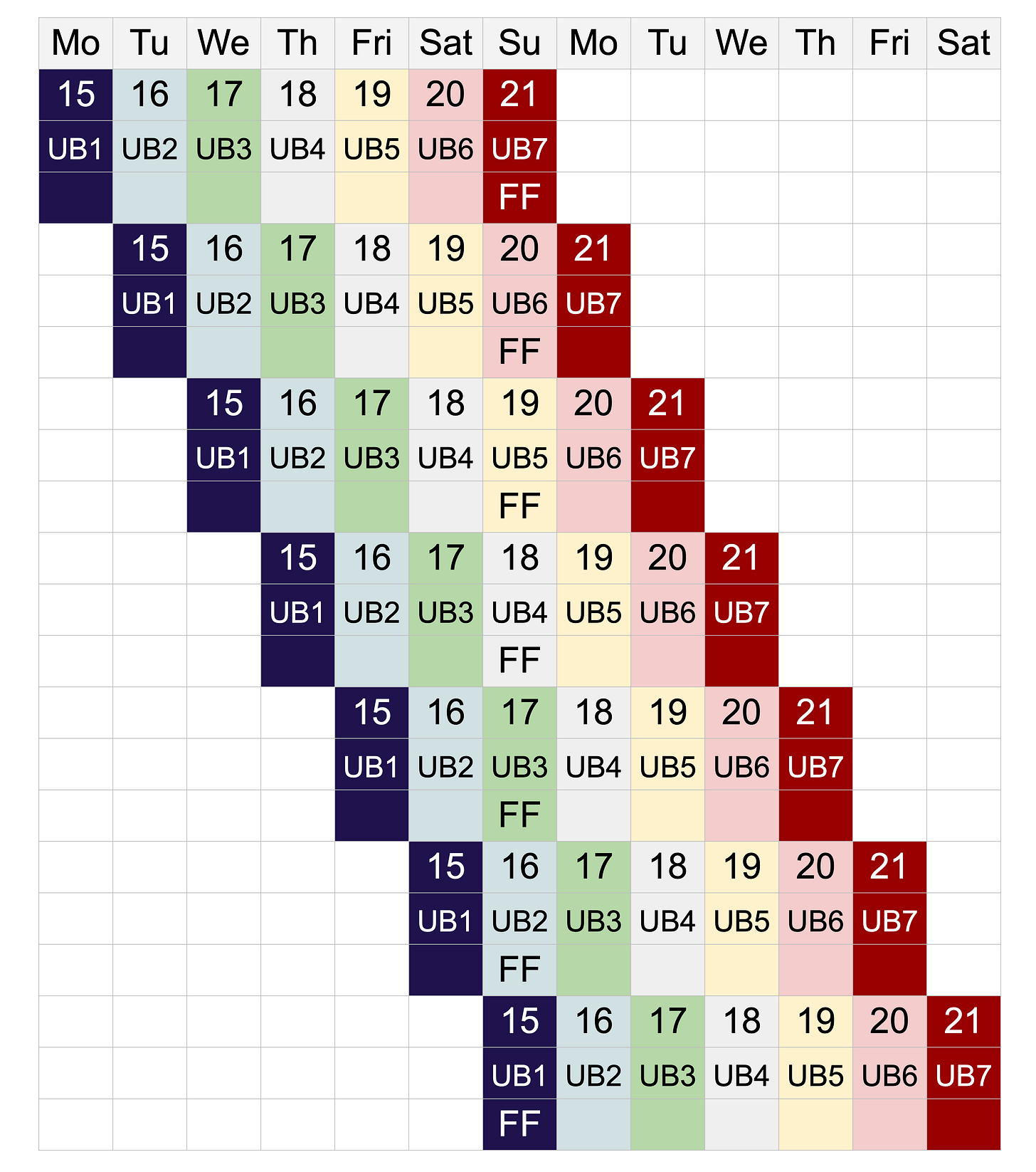 UB = Unleavened Bread ; FF = Firstfruits Wave Offering