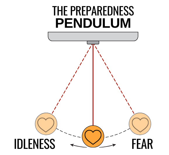 The Preparedness Pendulum: Your heart is like a weight suspended from a string and attached to a pivot point where it can swing freely. In this pendulum of preparedness, the world will try to swing you too far to the left, into idleness, and too far to the right, into fear. Having been a prepper now since 2015, I can tell you that an undisciplined heart will swing in both directions far too often. God wants us to be at equilibrium right in the middle where we are at rest in him and not moved to any extreme.