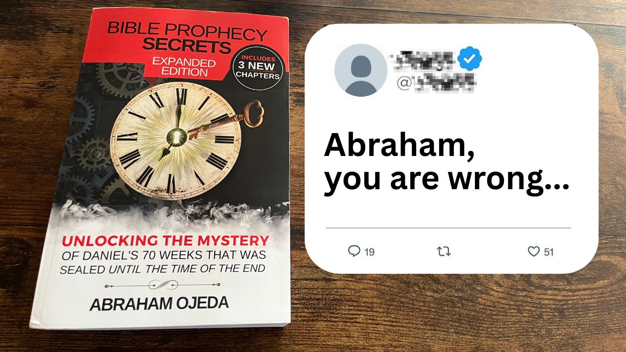 It is not very often that I receive intentional and thoughtful feedback on my interpretation of Daniel’s 70 Weeks. Because of how the correct interpretation of this prophecy violently clashes against long-cherished traditions in Christianity, any criticisms are usually emotional and superficial, like: