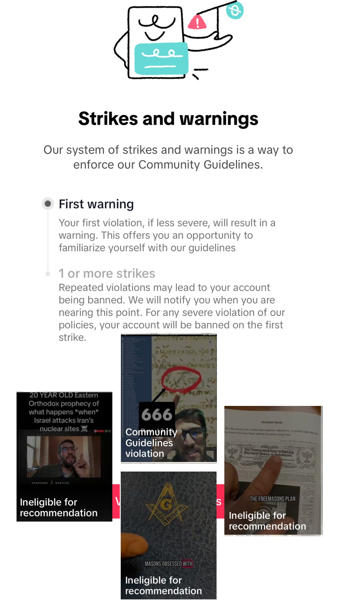 The problem with these restrictions inside of TikTok is that it can lead to account deletion and even the permanent banning of a user. I’ve seen it happen to at least one other Christian conspiracy TikToker I have followed over the years. One day he was there doing his thing. The next day he was gone forever.